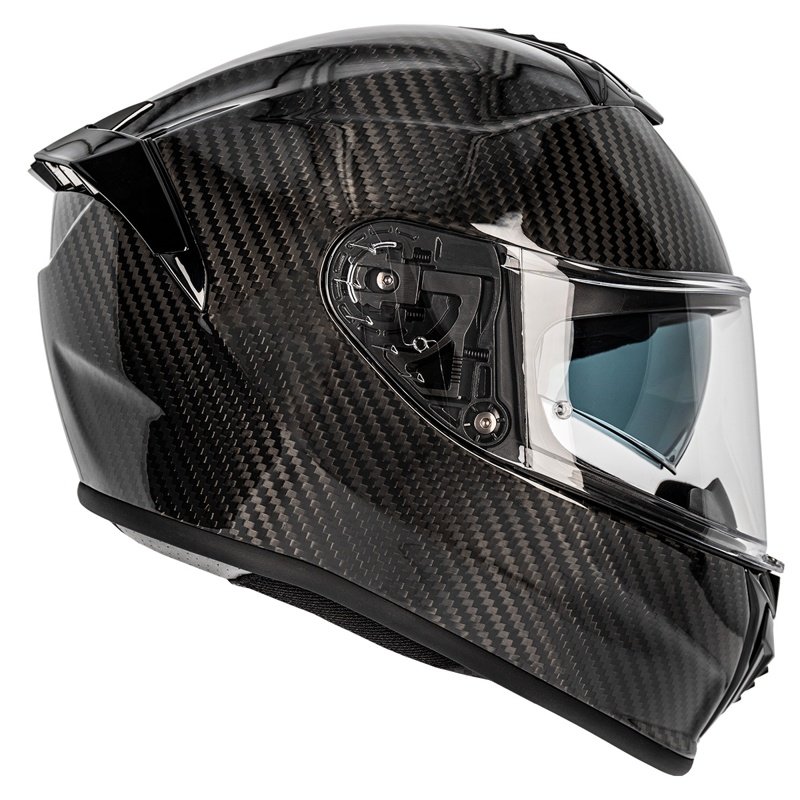 Modelo integral fabricado en fibra de carbono con sistema de ventilación ajustable. Incluye visor con mecanismo de cierre y acolchado interior desmontable para mantenimiento.