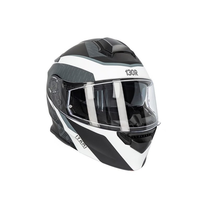 Casco integral con homologación ECE 22.06 y carcasa diseñada para optimizar la ventilación mediante múltiples entradas y salidas de aire. Incluye visor transparente y almohadillado interior desmontable para mantenimiento.